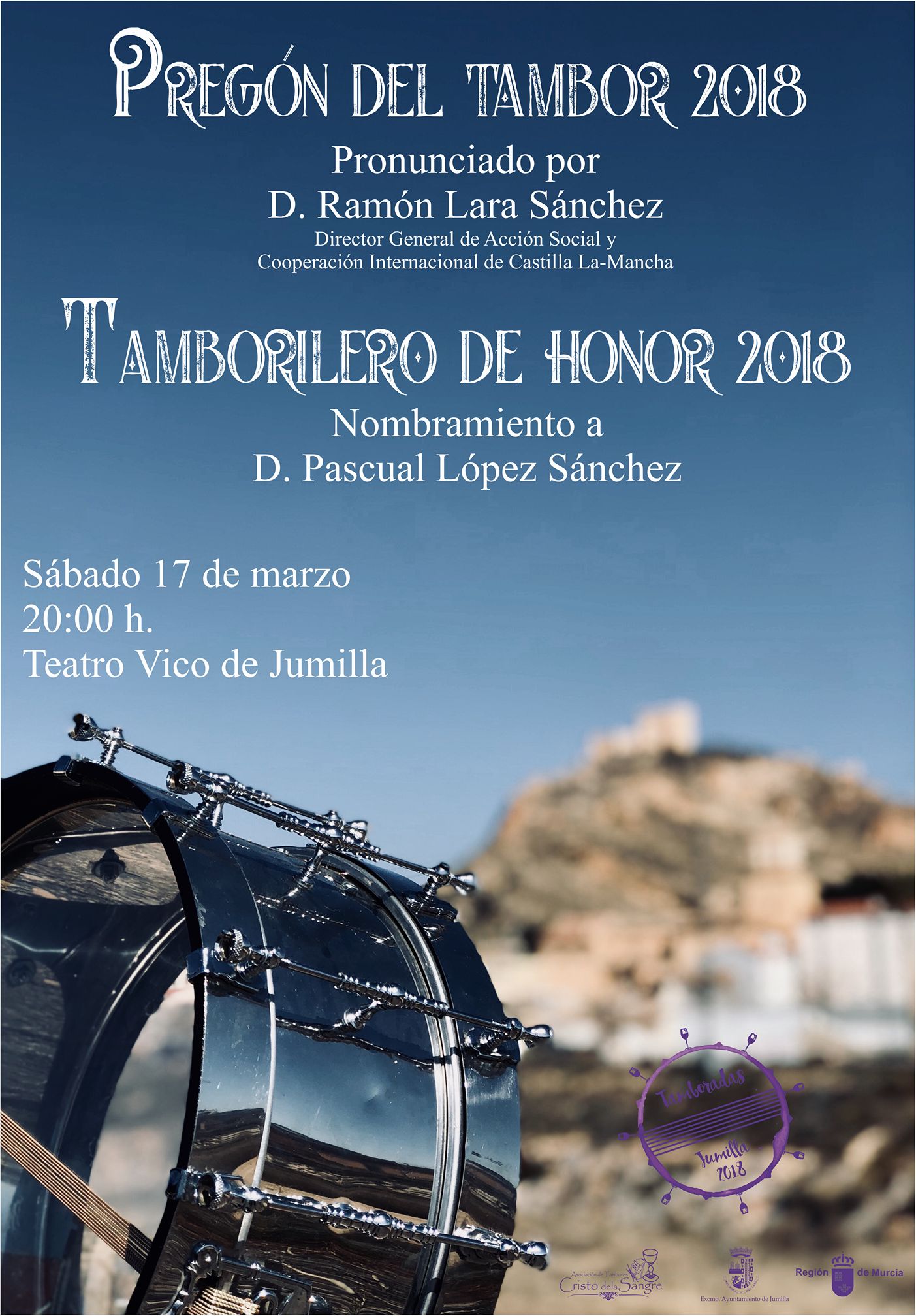En el mismo se procederá a nombrar al Tamborilero de Honor 2018, distinción que este año ha recaído en Pascual López Sánchez. Tras el acto se celebrará un vino de honor. La entrada cuesta 15 euros y se puede compra en comercio Gaspar.