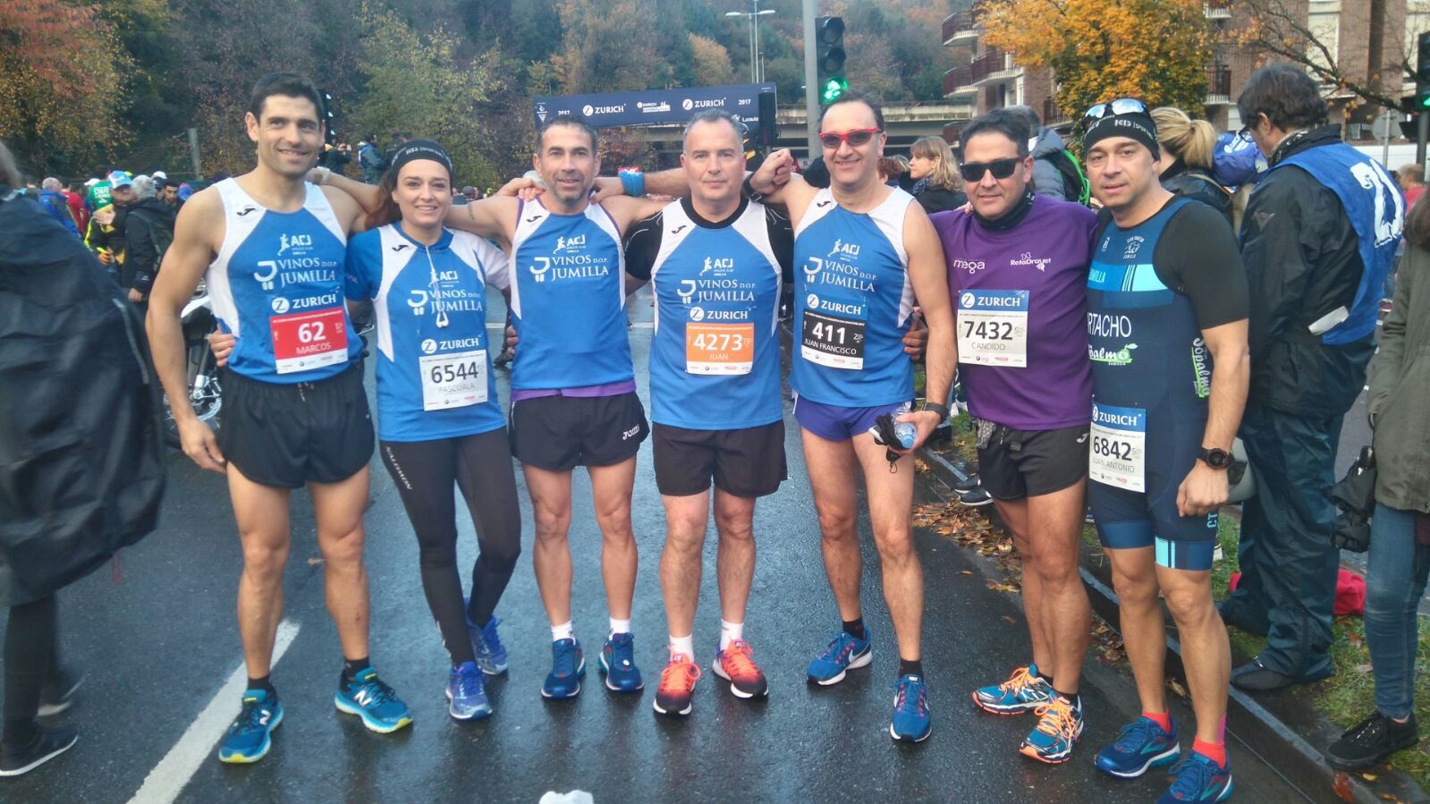 Nueve de ellos fueron jumillanos, de los que cuatro tomaron la salida en la prueba reina. Marcos Pérez completó los 42 kilómetros y 195 metros con un gran registro de 3h 3 min para acabar en el puesto 51 de la general. Tras él entraron Juan Francisco Pérez y Pedro José Jiménez, con 2h 20min y 3 h 22 min. El cuarto de los del Athletic Club Vinos DOP Jumilla fue Juan Carcelén, marcando 4h 35min, lo que le supone su mejor marca personal.