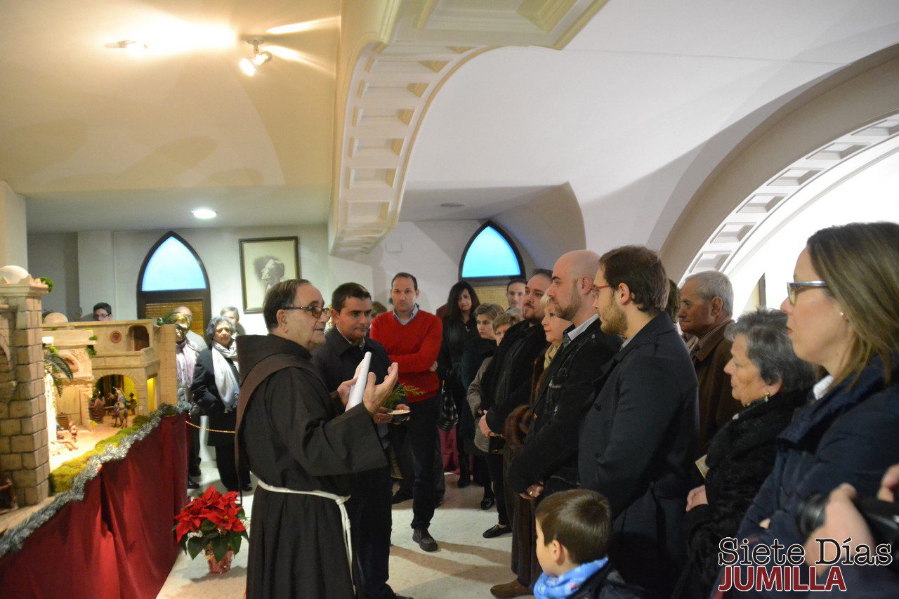 El padre franciscano Oliver bendijo el belén del artesano jumillano José Carrión Quílez, que se expone en la Casa Misionera San José