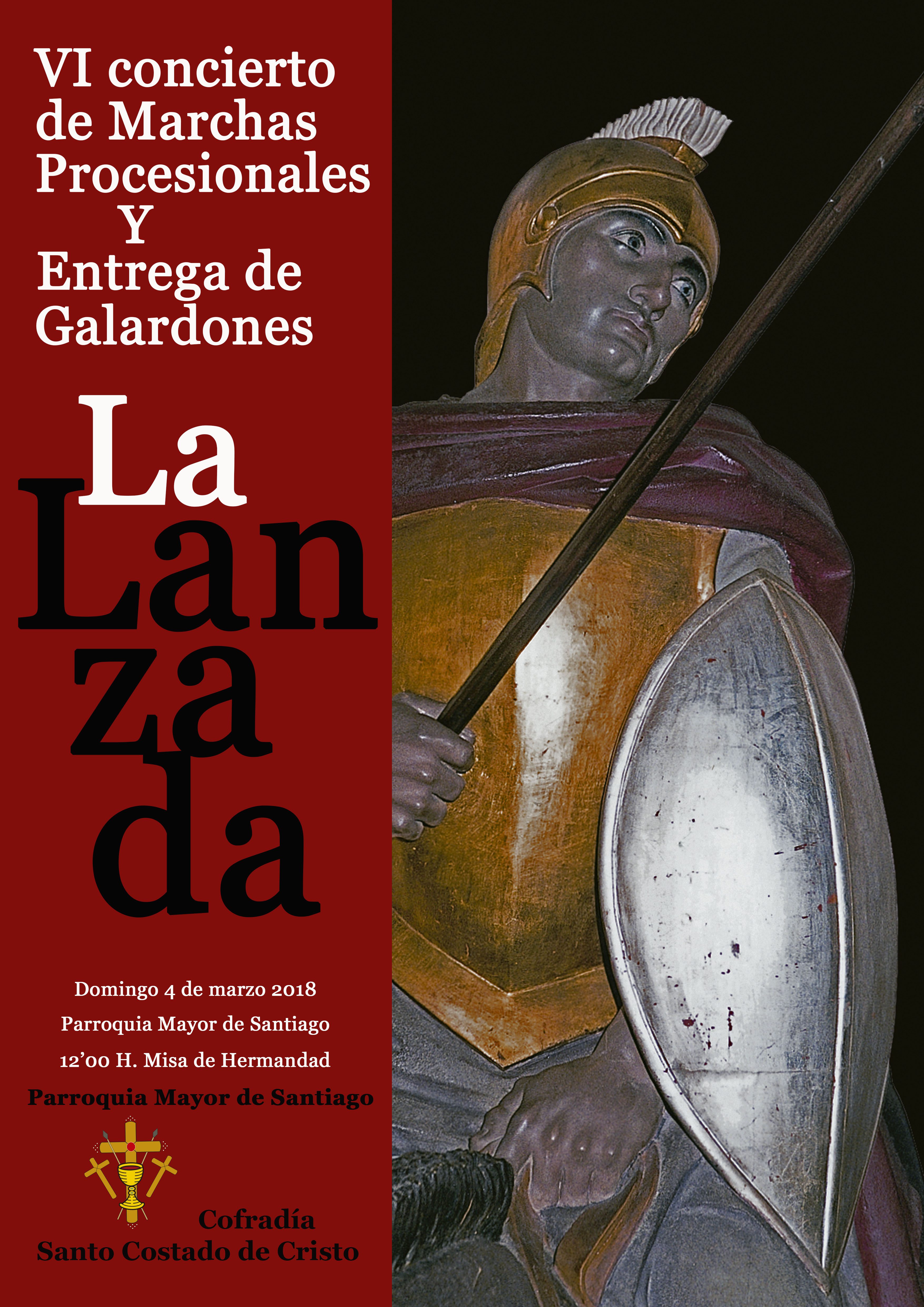 La Cofradía Santo Costado celebra el VI Concierto de Marchas de Semana Santa y la II entrega de galardones La Lanzada, que este año recogerán los hermanos Juan Tomás Fernández y Miguel Tomás Gil.