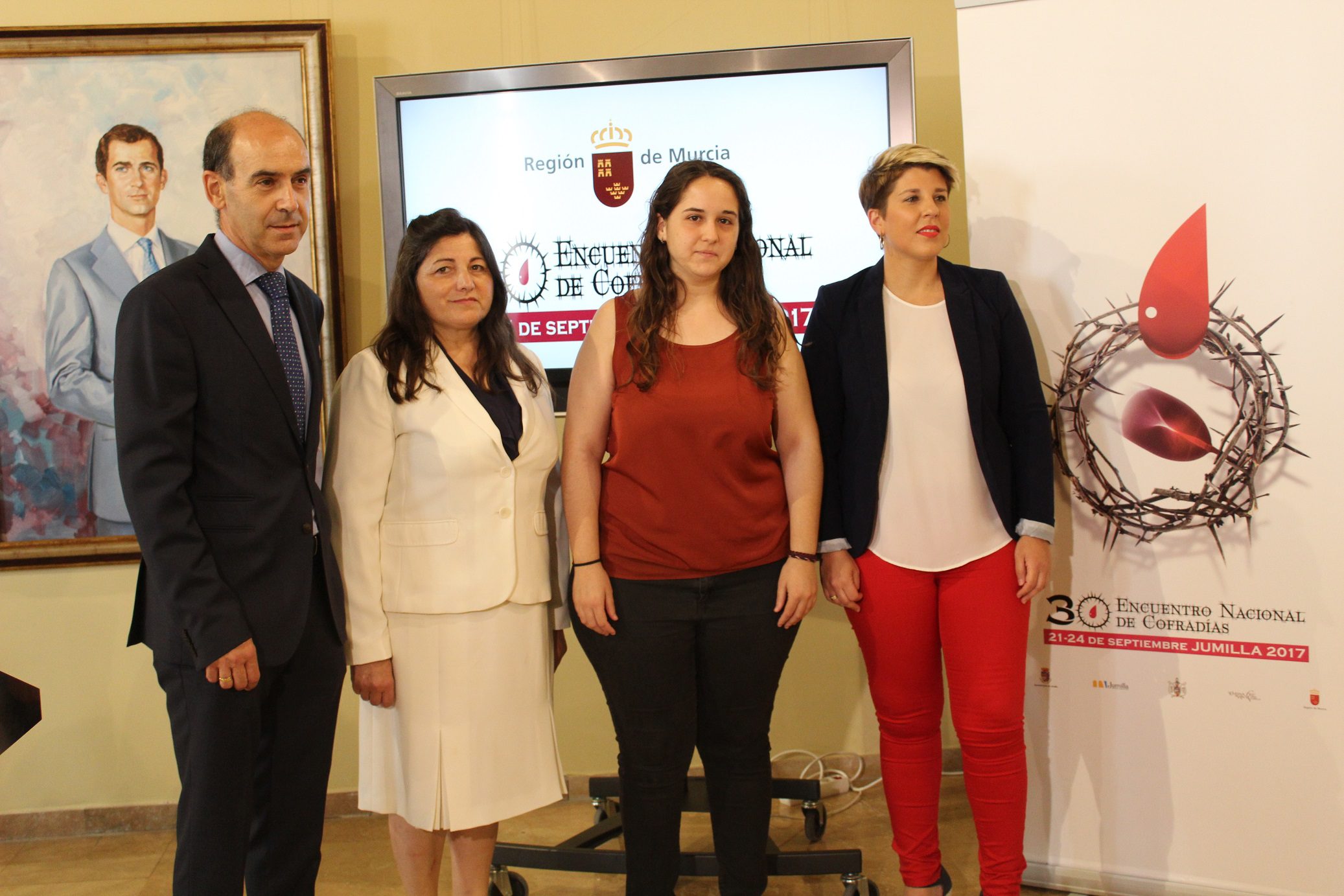El Palacio de San Esteban de Murcia acogió el lunes la presentación del 30 Encuentro Nacional de Cofradías que se celebrará en Jumilla del 21 al 24 de septiembre. Estuvieron presentes la portavoz del Gobierno regional, Noelia Arroyo, la concejal de Cultura y Festejos, Pilar Martínez, el concejal de Servicios, Francisco González, el presidente de la Junta Central de Hermandades, Juan Francisco Martínez, así como miembros del colectivo y la presidenta de la Federación de Bandas de Música, Ginesa Zamora. Pilar Martínez solicitó la colaboración de la CARM ya que según afirmó “es importante no solo para Jumilla, sino también a nivel regional, puesto que tiene trascendencia nacional”. Noelia Arroyo señaló que: “La Semana Santa de Jumilla es una de las abanderadas de la mejor tradición religiosa de nuestra tierra y seguro que el encuentro será un éxito”.