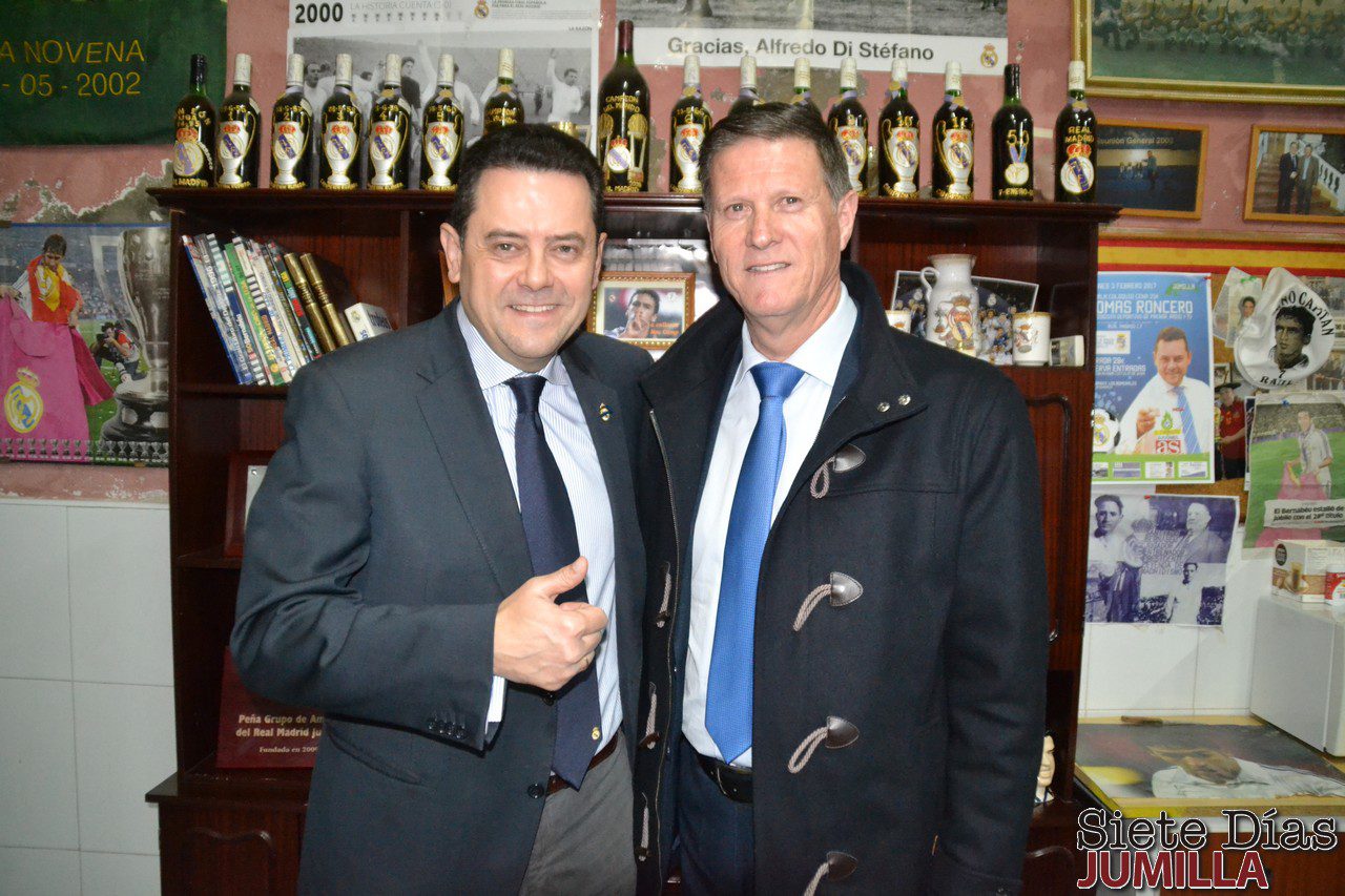 En Jumilla tanto Roncero como Bonet fueron recibidos por el presidente de la peña, Antonio García, y por alrededor de viente socios que allí se dieron cita, además de los medios de comunicación.