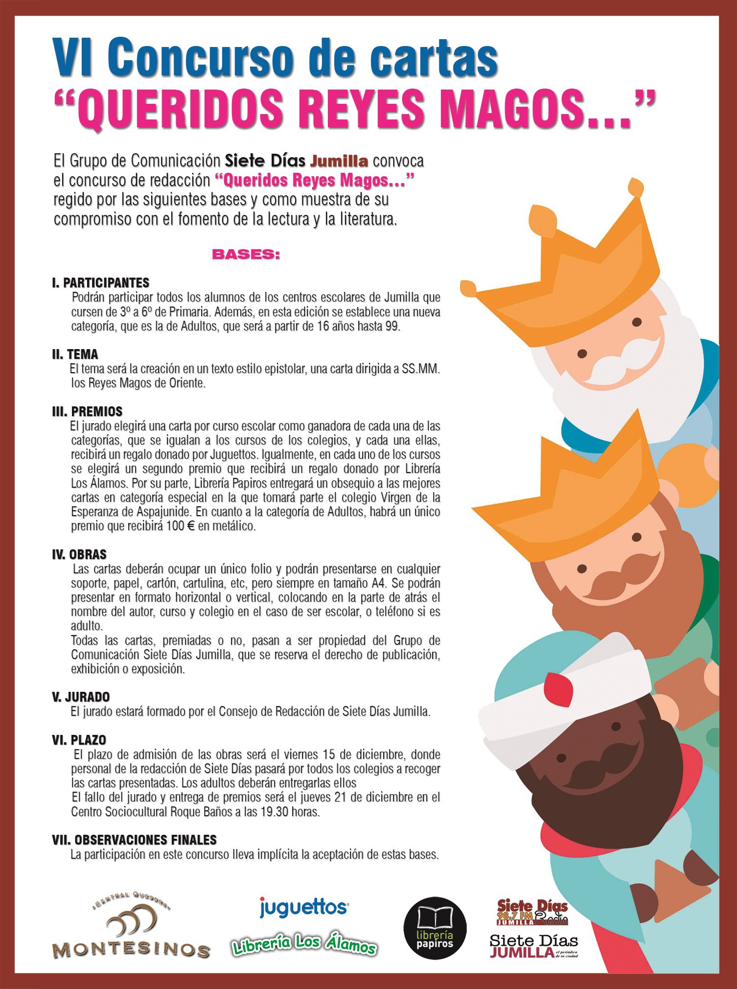 En este concurso, Siete Días insta a todos los alumnos de los centros escolares de Jumilla que cursen de 3º a 6º de Primaria a que escriban su texto epistolar, dirigido a Sus Majestades los Reyes Magos de Oriente.
