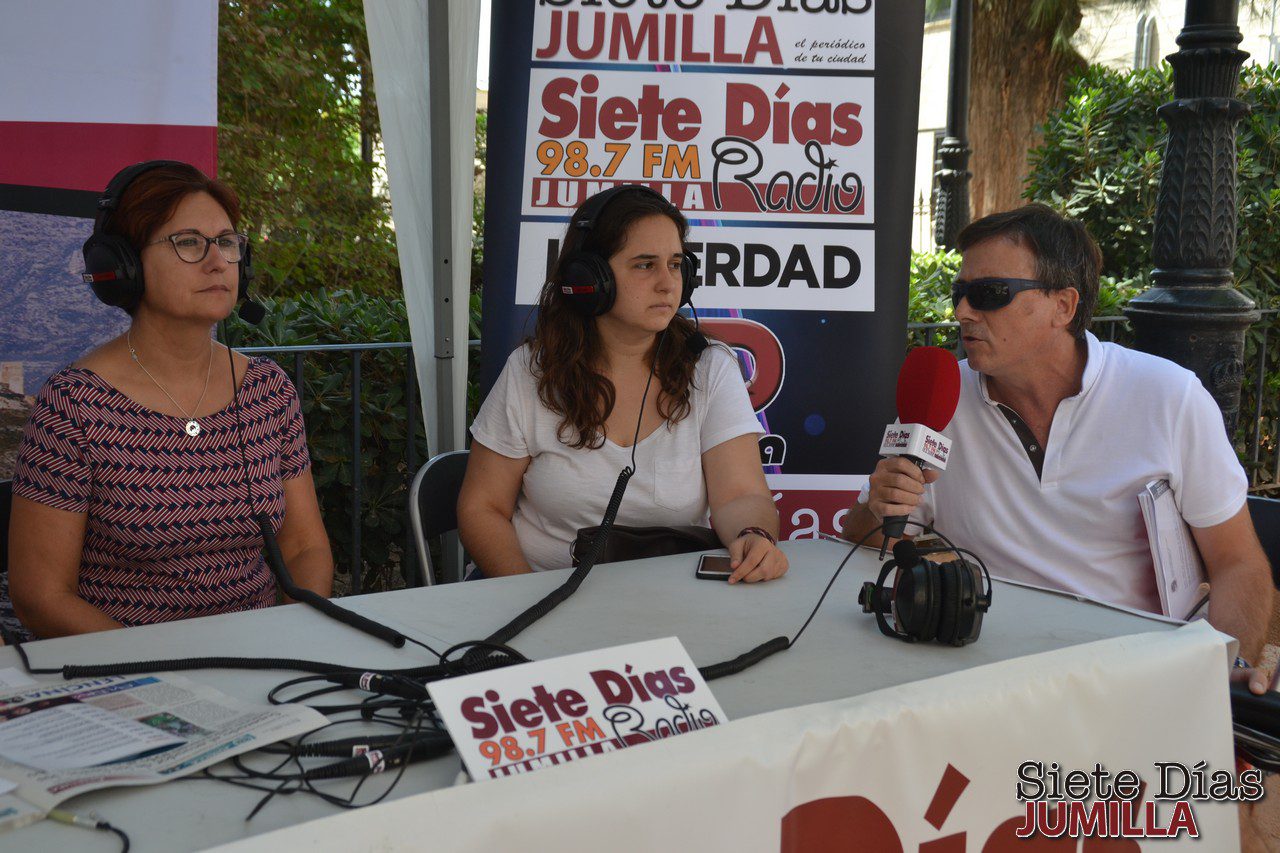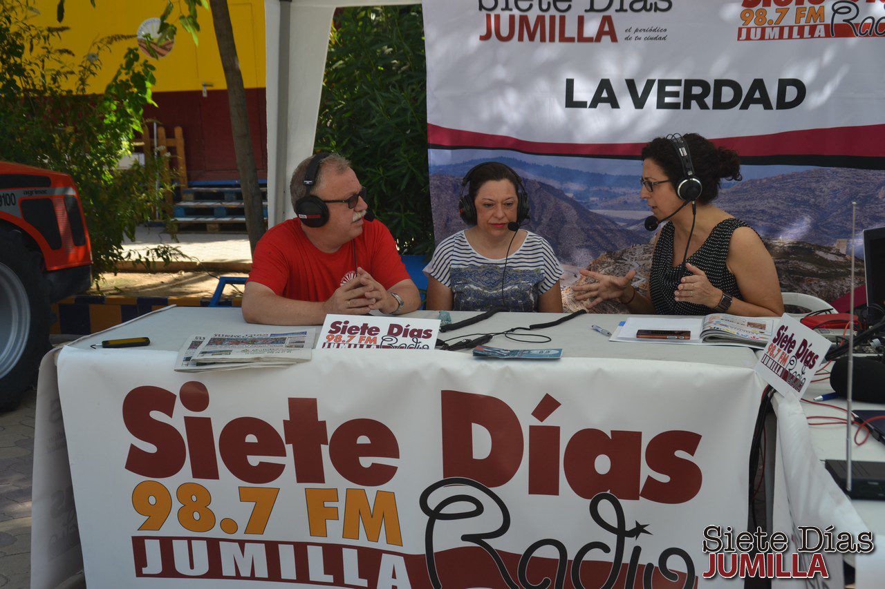 El stand de Siete Días Radio estuvo en la puerta de Casa Sebastián y por allí pasaron los cargos festeros de los Moros y Cristianos, de los grupos del Festival Nacional de Folklore, José Ortega de la redacción de deportes, Elisa Martínez, Bodeguera Mayor y Salvadora Bernal del Consejo de Participación del Centro de Personas Mayores del IMAS.