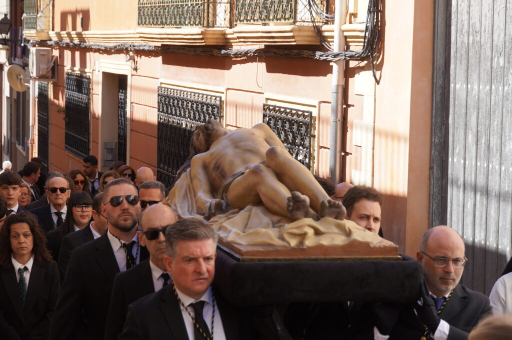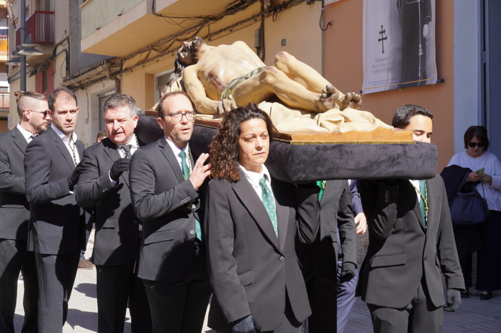 El Sábado Santo se celebró el ya tradicional traslado del Cristo Yacente organizado por la Hermandad de la Vera Cruz y Santo Sepulcro, un acto que simboliza el momento de depositar a Jesús en su sepultura.