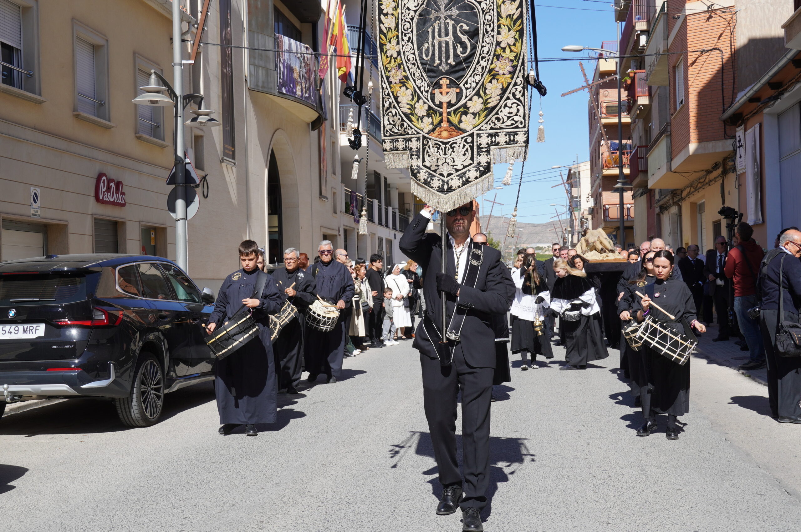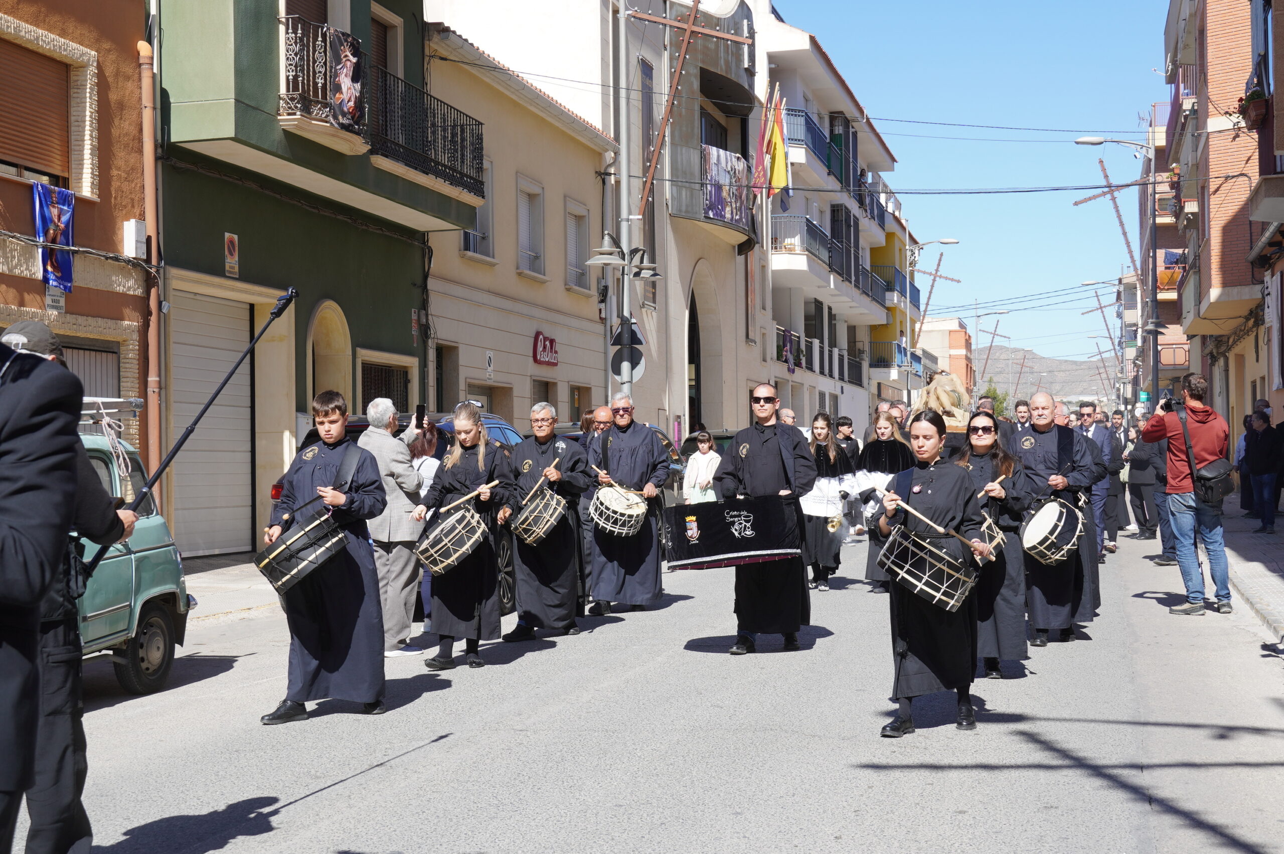 En el recorrido, desde la sede de la hermandad en calle Barón de Solar hasta la Iglesia Mayor de Santiago, acompañó la Asociación de Tambores Cristo de la Sangre.