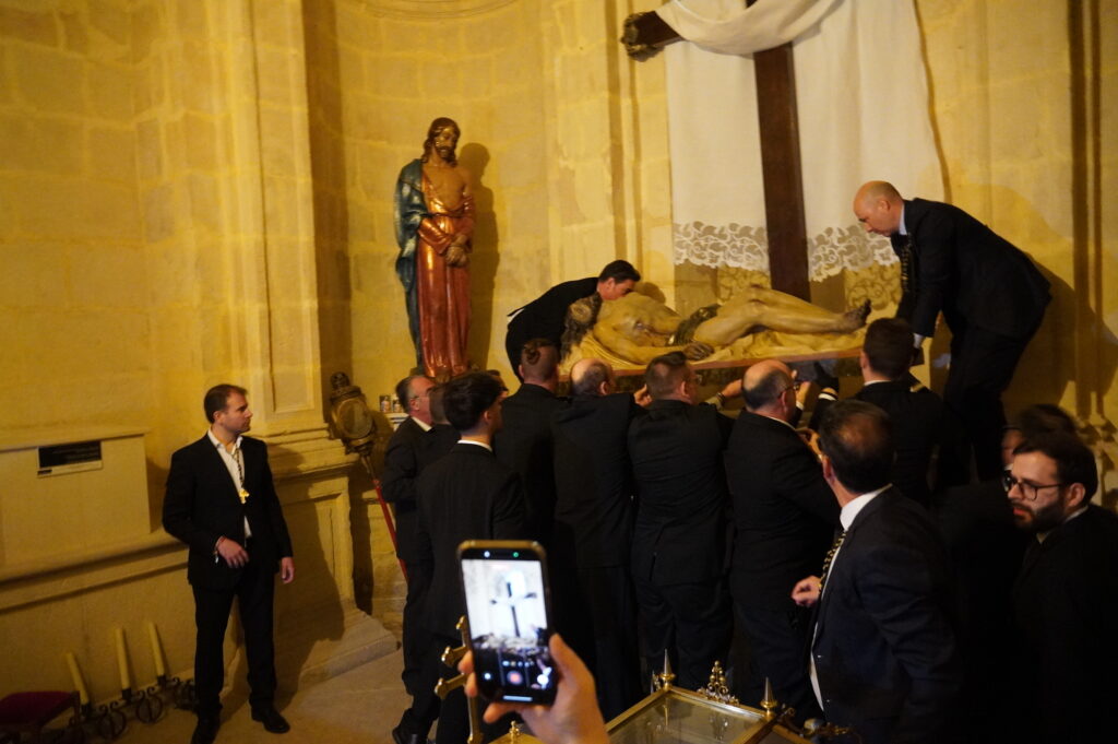 El acto simboliza el momento de depositar a Jesús en su sepultura