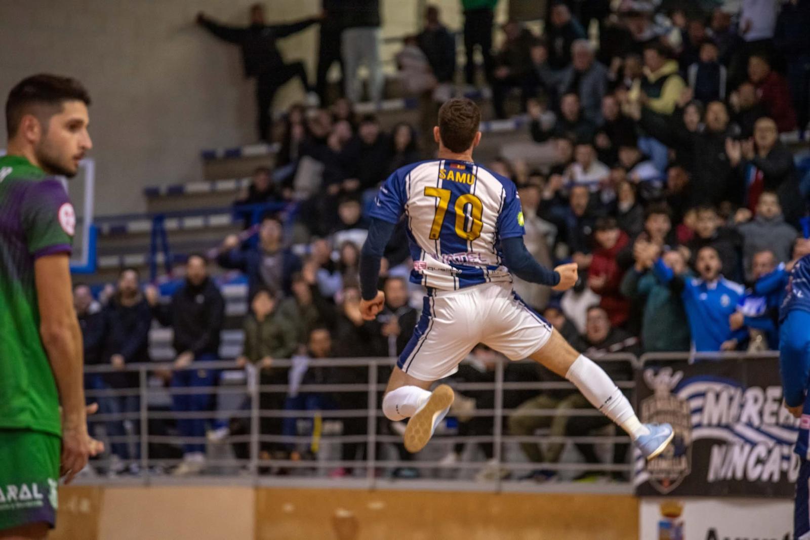 Samu celebra su gol del sábado frente a Malacitano. Foto: Nicolás Moreno