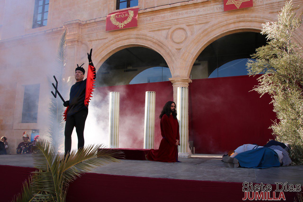 La buena temperatura propició una gran asistencia de público a la representación del drama sacro El Prendimiento que tuvo lugar ayer en la Plaza de Arriba. Tomaron parte un total de 21 actores bajo la dirección de Miguel García Guardiola, con la música coordinada por Antonio Olivares y con la participación de los Armaos del Cristo Amarrado. Se trata de un drama religioso en ocho cuadros escrito en verso. Al principio se representaba en la calle Cura Navarro, frente al convento, en el Teatro Vico, incluso frente al Ayuntamiento.