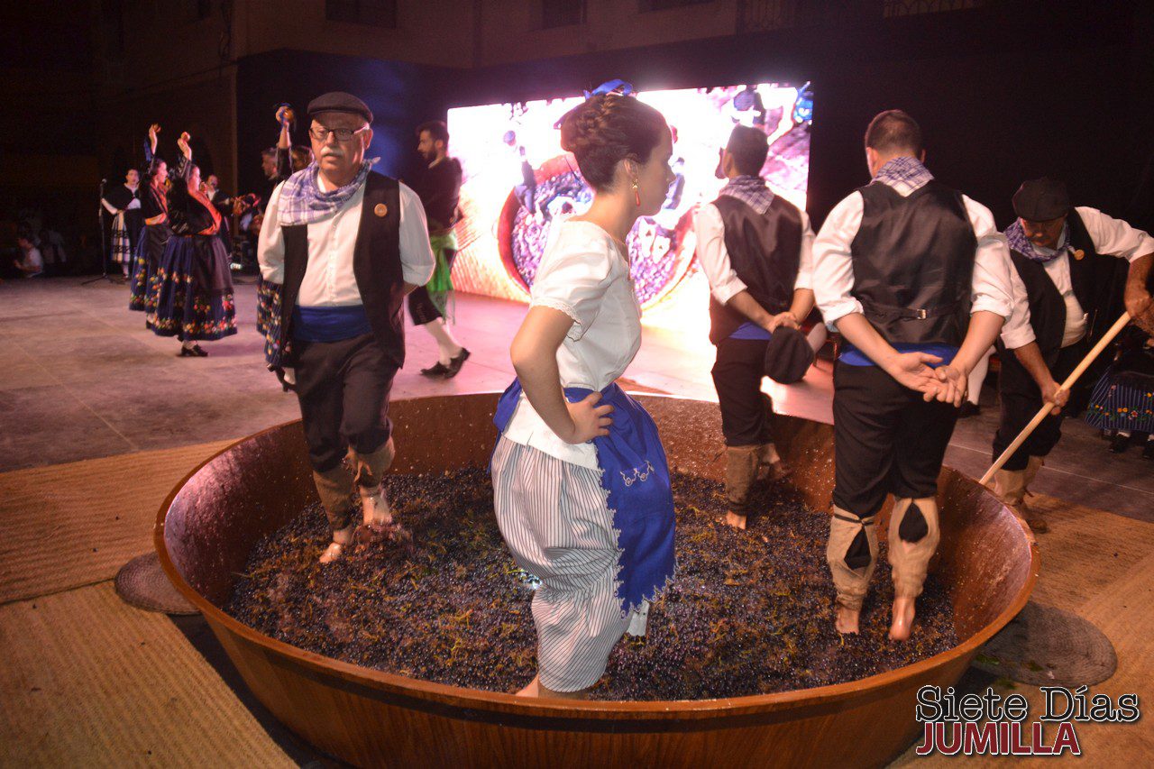 Se trata de uno de los actos más emblemáticos y que mejor representa la tradición vitivinícola de Jumilla: La Ofrenda de Uvas y Primer Mosto, que organiza la Federación de Peñas de la Fiesta de la Vendimia. Tuvo lugar en la tarde de ayer en el jardín de la Glorieta donde se congregaron centenares de personas para ver en directo el proceso de elaboración del mosto y su bendición. También estuvieron presentes un total de 14 delegaciones de fiestas de poblaciones cercanas, con representantes de Murcia, Yecla, Pinoso, Elda, San Vicente del Raspeig, Elche, Alzira, Xativa, Monóvar, Algueña, Almansa, Ontur, Fuentealamo y Albatana.