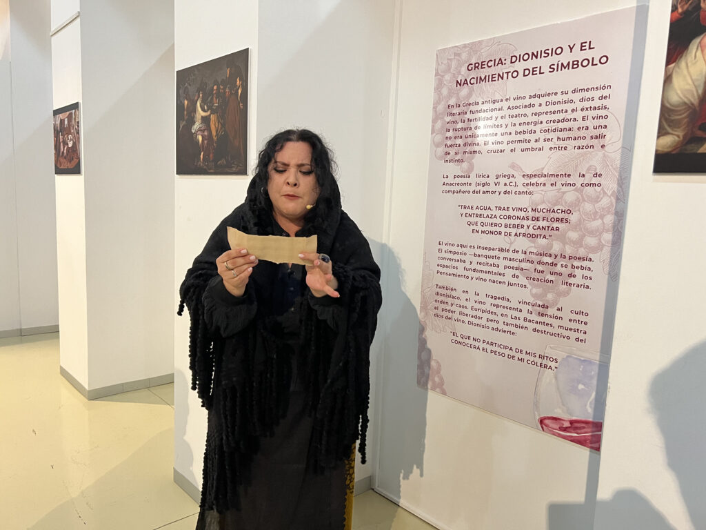 Según explicó la técnico de Museos Estefanía Gandía la exposición recoge textos de la antigua Grecia, con autores como Sócrates y Platón, que mostraban que el vino, bebido con moderación, puede servir para desarrollar la razón y el debate filosófico. Ya en la antigua Roma, el vino se democratiza, y aparece, además de en tratados de agricultura, en poemas de Ovidio u Horacio.