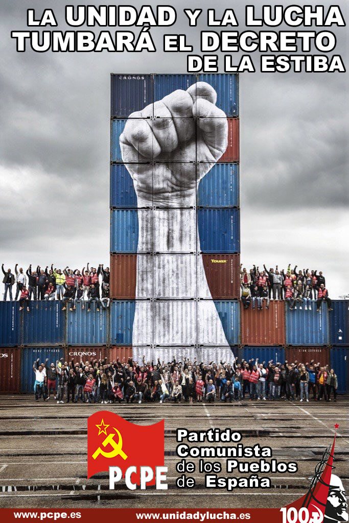 Lo que ocurre actualmente en la estiba es un ejemplo claro de lo que ofrece cada día el sistema capitalista: más beneficios para las grandes multinacionales y menos derechos para la clase obrera. La Unión Europea muestra su verdadero rostro como estructura política y económica al servicio del gran capital, imponiendo este brutal ataque contra un colectivo obrero. Los y las comunistas del PCPE creemos que los trabajadores y trabajadoras no pueden esperar otra cosa del capitalismo, la lucha es el único camino para salvaguardar nuestros derechos.