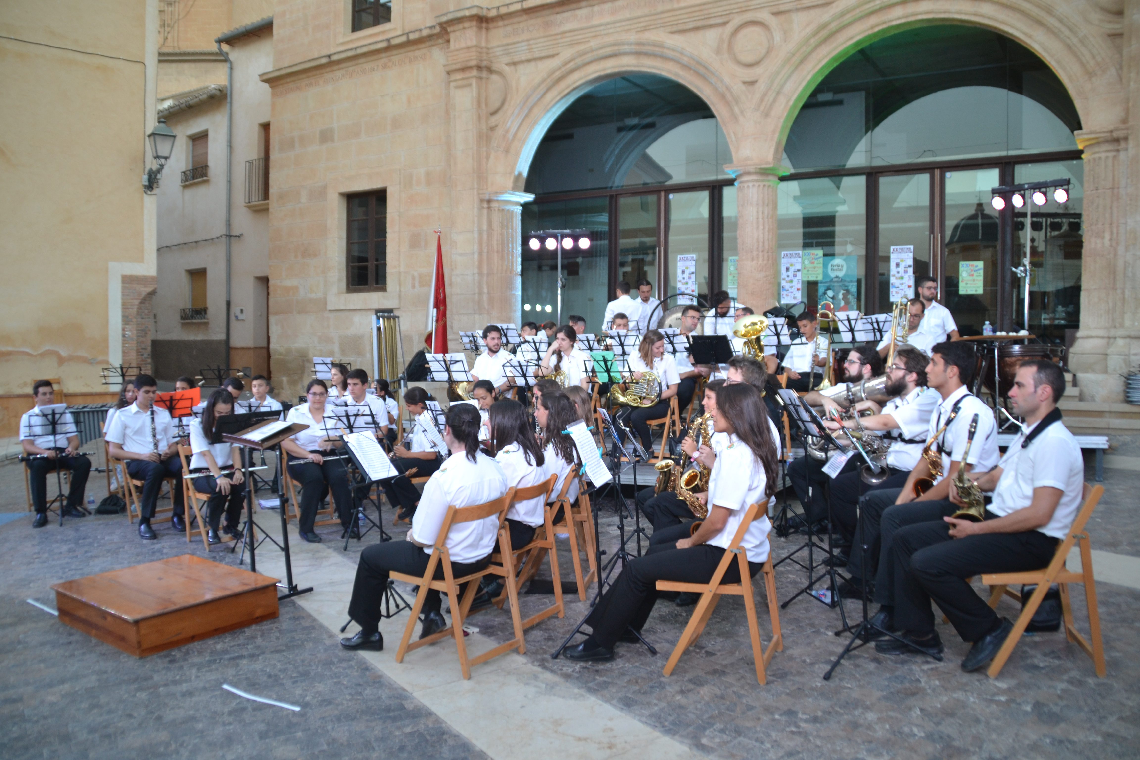 En pleno casco antiguo, en la plaza de Arriba, se llevó a cabo en la noche del sábado el XX Festival de Bandas de Música de la Asociación Musical Julián Santos. Al evento asistieron centenares de personas, entre ellas, distintas autoridades, la concejal de Cultura Pilar Martínez, la diputada socialista Yolanda Fernández, así como miembros de la Federación de Bandas de Música de la Región de Murcia, entre ellos su presidenta Ginesa Zamora.